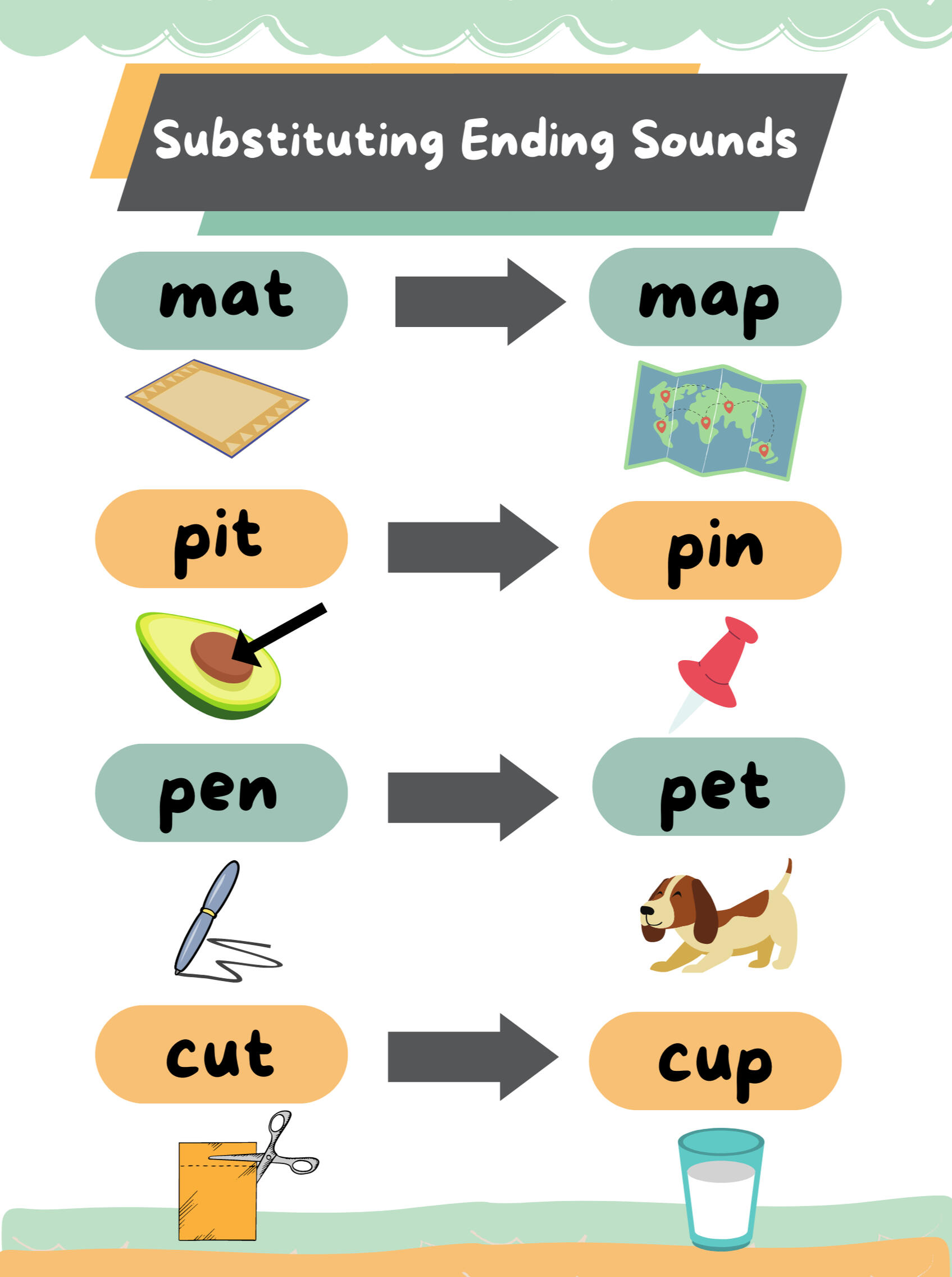 This lesson practices orally substituting the ending phoneme (sound) in consonant-vowel-consonant (CVC) words with a different phoneme.I chose to include this lesson to showcase my knowledge of the Science of Reading. The Science of Reading focuses on increasing the knowledge and implementation of evidence-based practices to positively impact student literacy achievement.