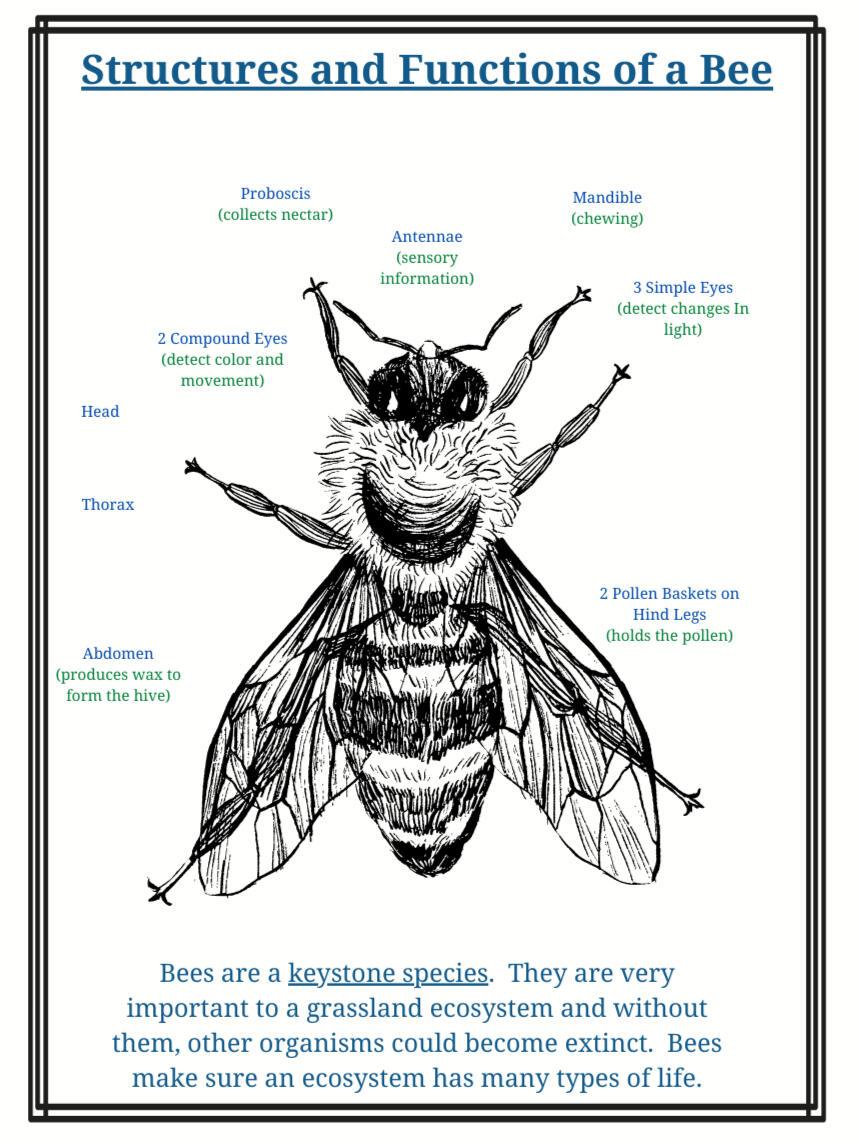 This lesson explores the physical characteristics of the grassland ecosystem and focuses on how bees are a keystone species and are vital to the survival of other organisms in the grasslands.I chose this lesson because it is one of my favorite science lessons from the ecosystems unit. This lesson lends itself to rich discussions on the importance of protecting organisms and their environments, especially when they are a keystone species.After students completed the assessment, 100% of students were able to describe the physical characteristics of grasslands and explain what would happen if there were no more bees, but several students were confused with the definitions of structure and function. This data told me that as we continue to study other environments in this unit, I need to keep using the specific vocabulary.
